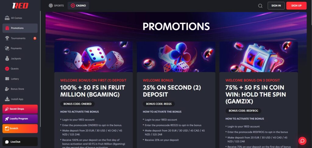 1Red Casino also promotes responsible gambling through clear measures aimed at player safety.