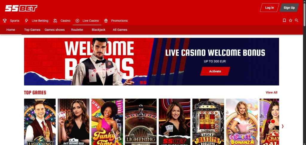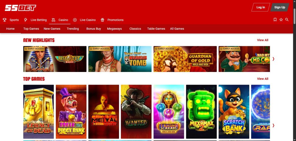 55Bet Casino impresses players with over 6,000 games, offering a wide range of slots, table games, and live dealer options.