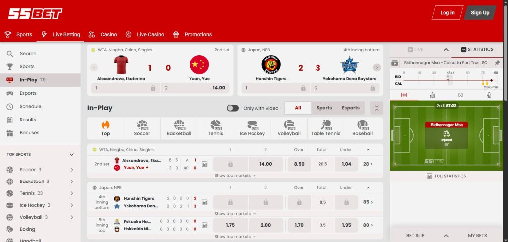 55Bet offers far more than just casino games. The site features a full sports betting section packed with international events, live betting markets, and a growing selection of esports competitions.