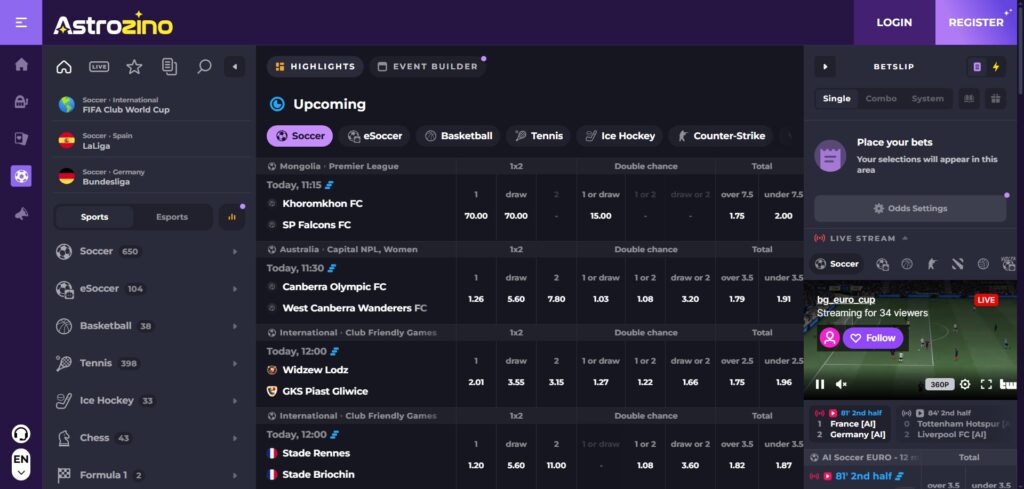 Astrozino Casino is an international online gambling site launched under the ownership of Famagousta B.V., a company registered and licensed in Curacao. As of 2025, the casino has grown its library to include thousands of games, covering everything from slot machines and live dealer tables to virtual sports and crash games. Players can access the site in multiple languages, and payments are supported in both fiat and cryptocurrencies. It also features live sports betting and esports, making it a flexible option for both casino and sportsbook players.