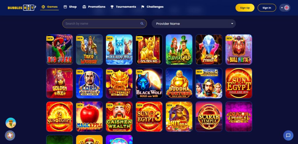 BubblesBet Casino offers over 1700 games from top providers, covering multiple categories: