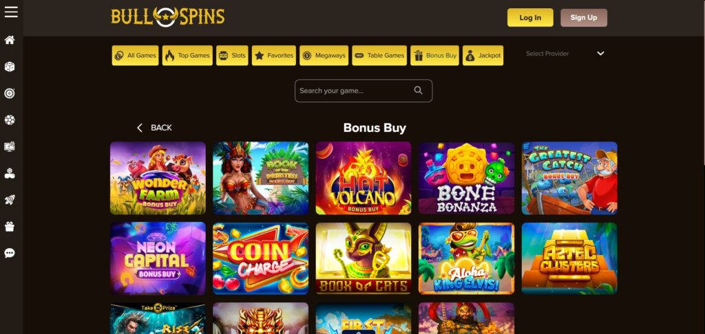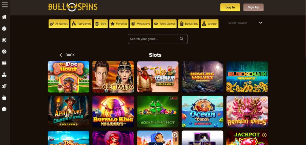 Bullspins offers a diverse range of slots, table games, progressive jackpots, live dealer tables, and crash games. -