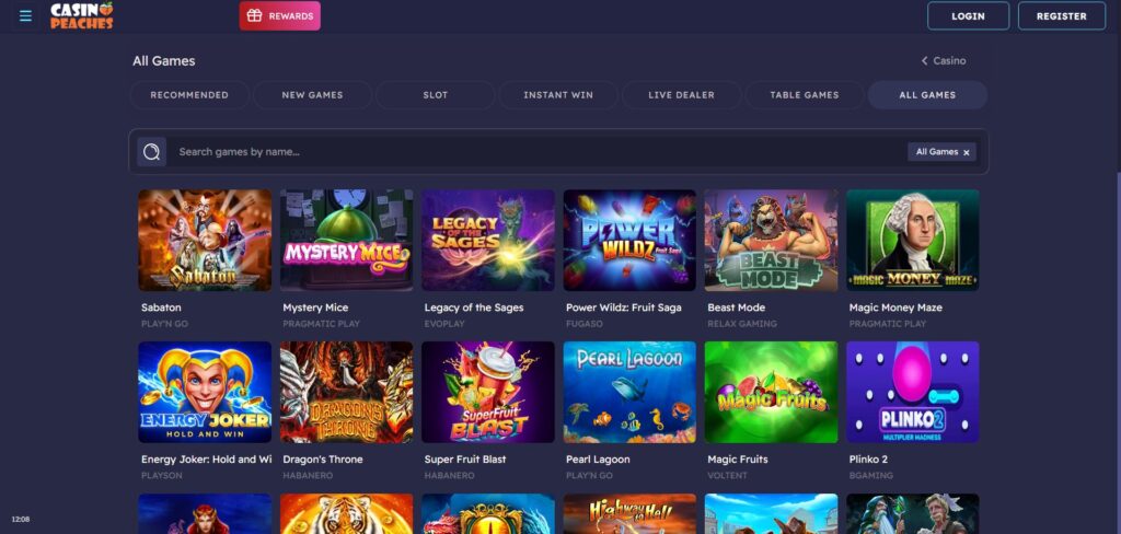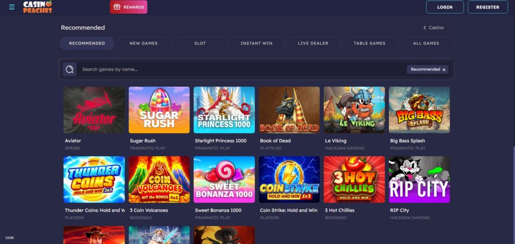 Casino Peaches features over 3,200 games, covering all popular categories. Here’s a closer look at some of the standout titles available on the site: