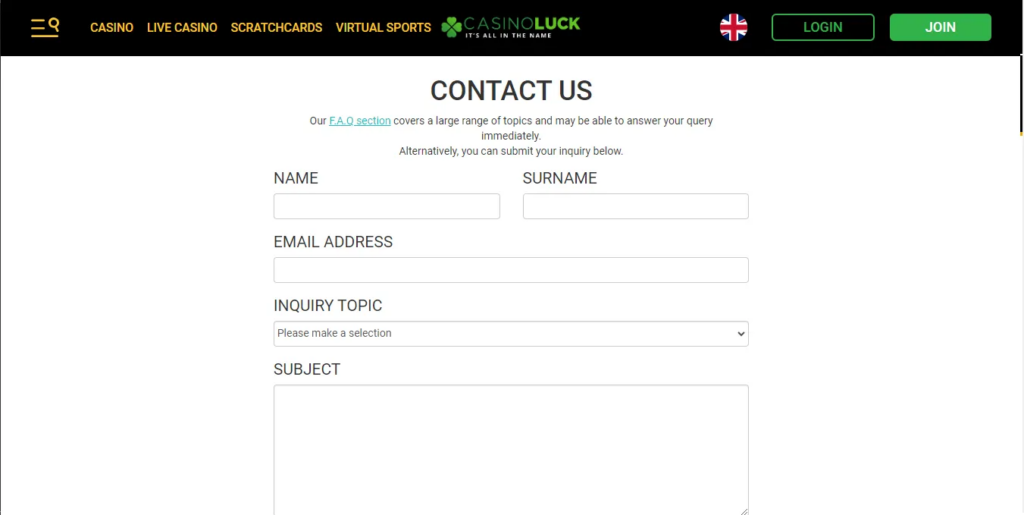 You can also send an email to the casino at support@casinoluck.com. They write back fast and with full answers, most times in just hours.