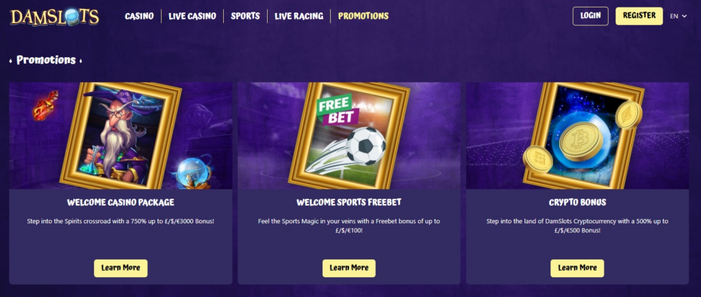 You can find Damslots Casino no deposit bonuses and other promotions on the casino’s official website.
