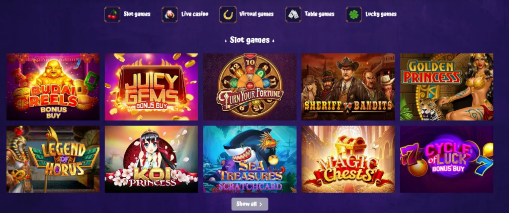 🎮 Game Selection | Slots, table games, and live dealer games |