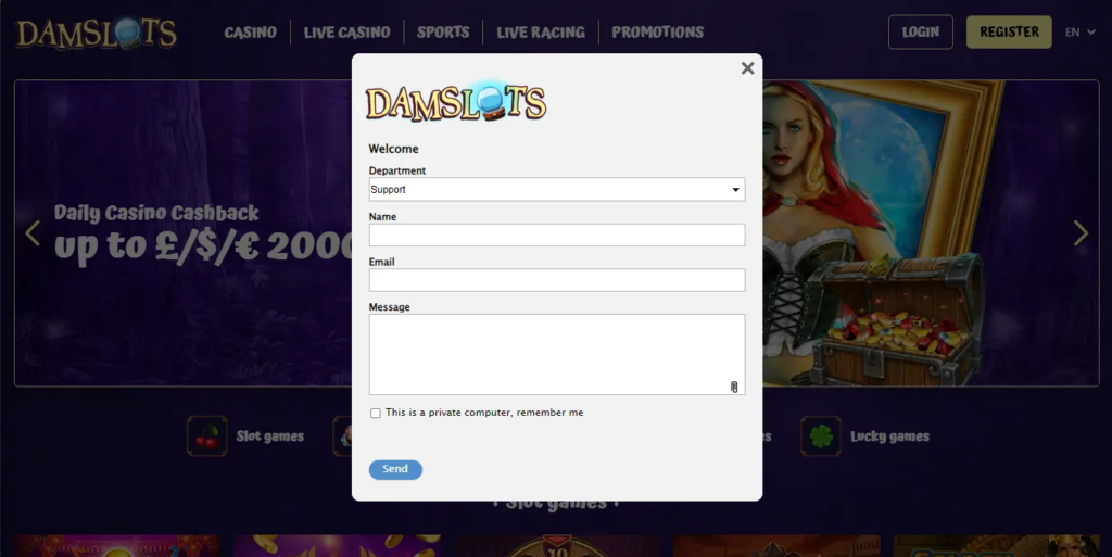 You can contact The Damslots support team via live chat, email, or telephone. The customer service team is available 24/7 and they are always happy to help with any queries that you may have.
