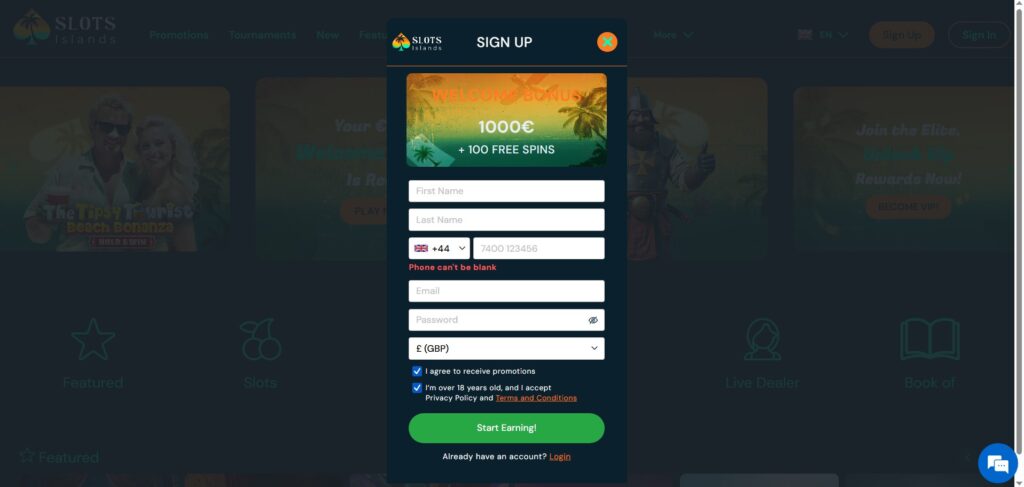 Creating an account at Slots Islands Casino is quick and straightforward. The process guarantees that new players can start depositing and claiming bonuses in just a few steps.