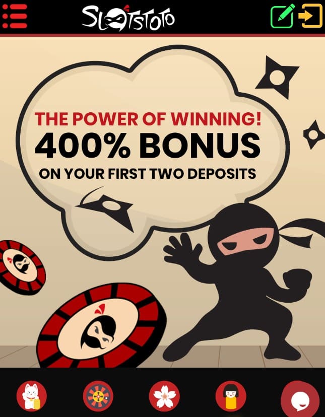 Right now, Slotstoto Casino does not have a no-pay bonus. But, the Slotstoto Casino asks you to join in on many good deals and offers, like extras for your first 2 money-ins: