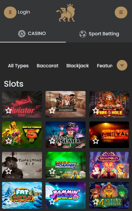 | 🎮 Games Offered | Slots, Baccarat, Blackjack, Featured Games, Live Casino Games, Roulette, Table Games, Other Games |