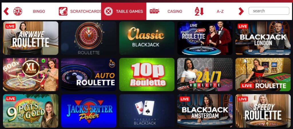 There are a total of 5 Blackjack and Roulette tables. Here are several games that people in the UK can play: